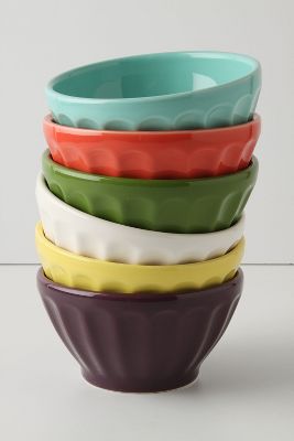 All of which were purchased today with the help of my handy-dandy family discount card courtesy of the Boogs' job (he's the display artist at Urban). I cannot tell you how long I have coveted the latte bowls, nor can I fully express what joy it brings me to see them stacked now, next to a bottle of wine and a big white Anthro bag with those spartan, elegant red handles. I believe we've called this feeling "happiness," though it seems to fall devastatingly short of what I'm currently experiencing.